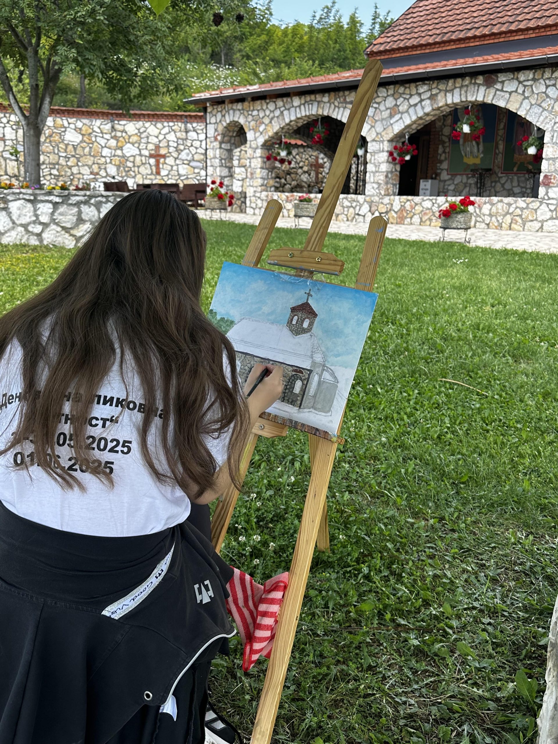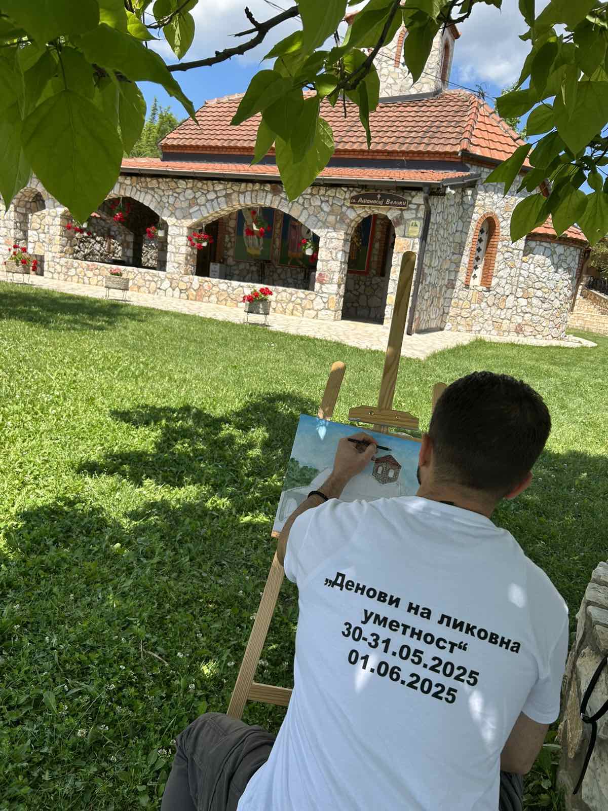 ДЕНОВИ НА ЛИКОВНА УМЕТНОСТ 2025 година се одржа во дворот на Манастир Св.Атанасиј с.Глуво. Големиот број посетители, со пофалби и воодушевување ја следеа работата на учесниците, воедно, младите посетители имаа катче кадешто и самите имаа можност да цртаат.